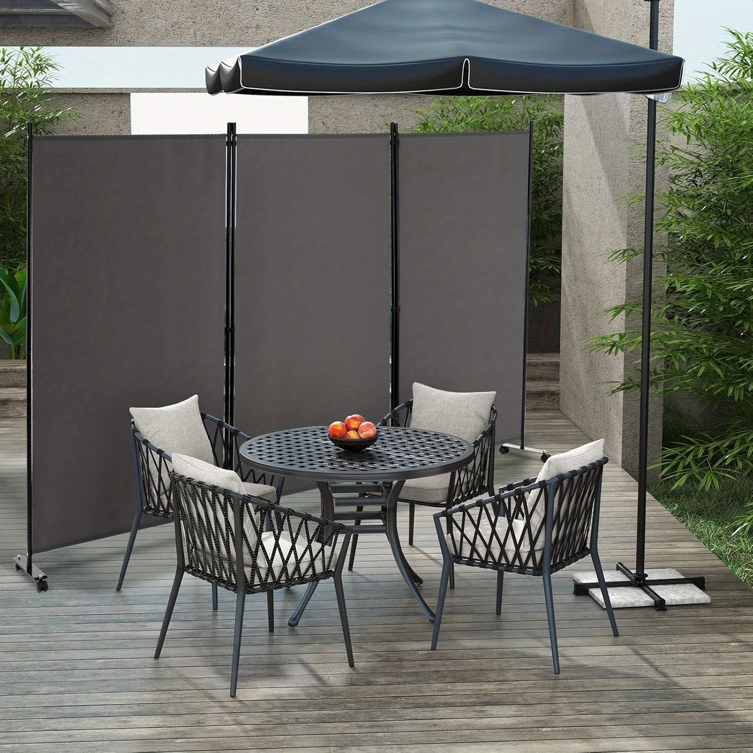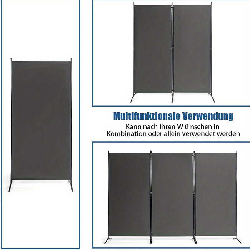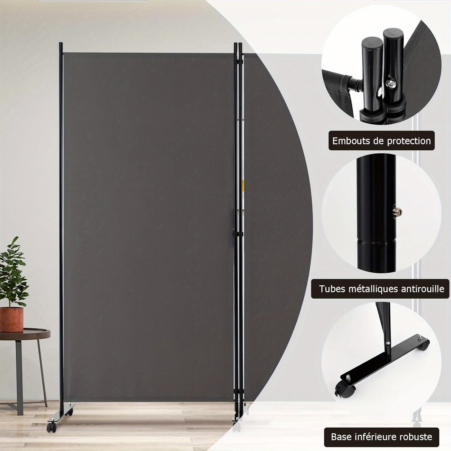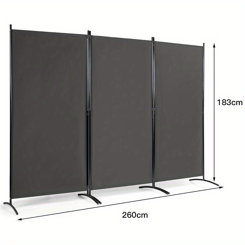 Créez un espace intime ou délimitez une pièce avec ce paravent moderne. Il dispose de trois panneaux en tissu gris anthracite soutenus par une structure en métal noir. Sa conception pliable et ses pieds courbés assurent stabilité et rangement facile. Idéal pour une chambre, un salon ou un bureau.