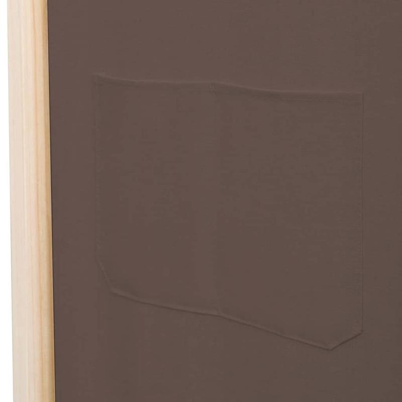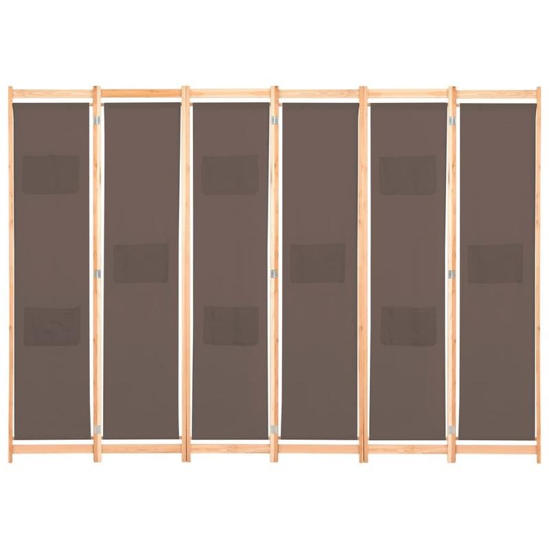 Créez un espace privé ou organisez vos affaires avec ce paravent. Ses 6 panneaux en bois et tissu marron intègrent de nombreuses poches pratiques. Idéal pour séparer une pièce ou pour un rangement astucieux.