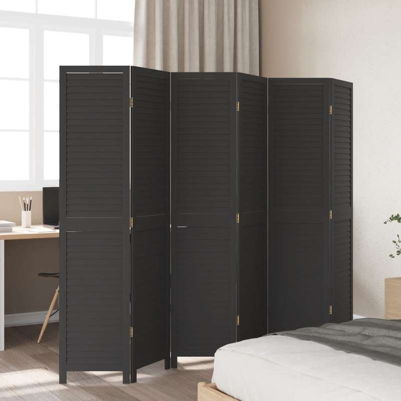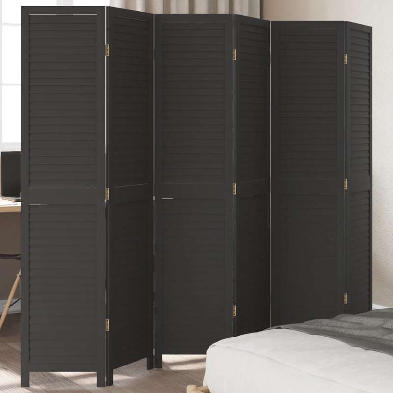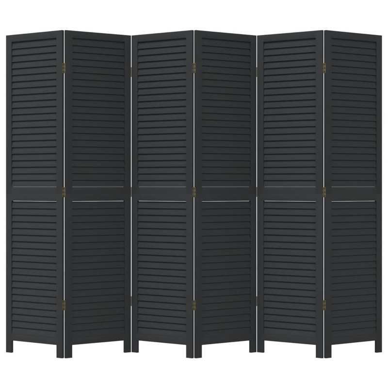 Paravent 6 Panneaux Lattés en Bois Gris Anthracite