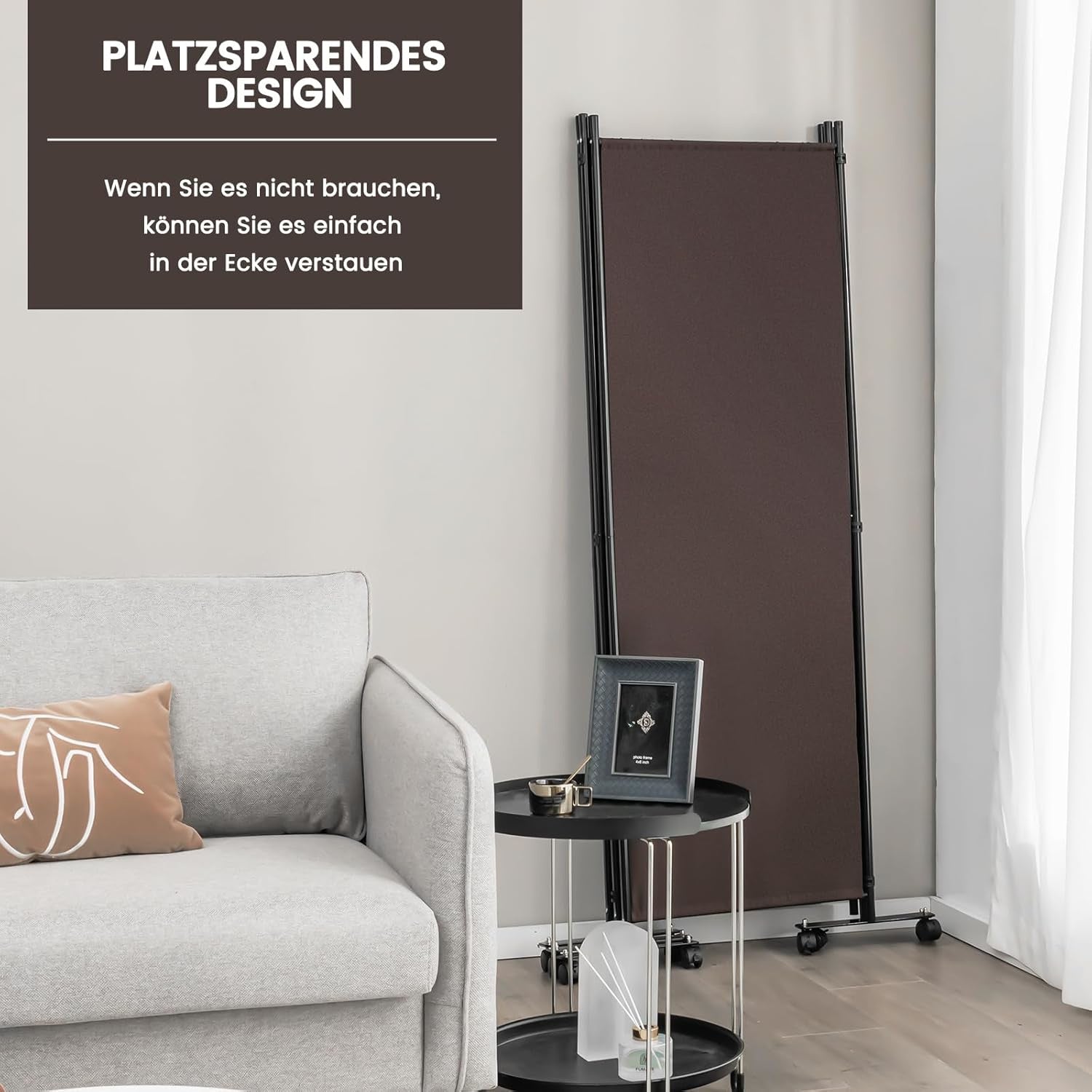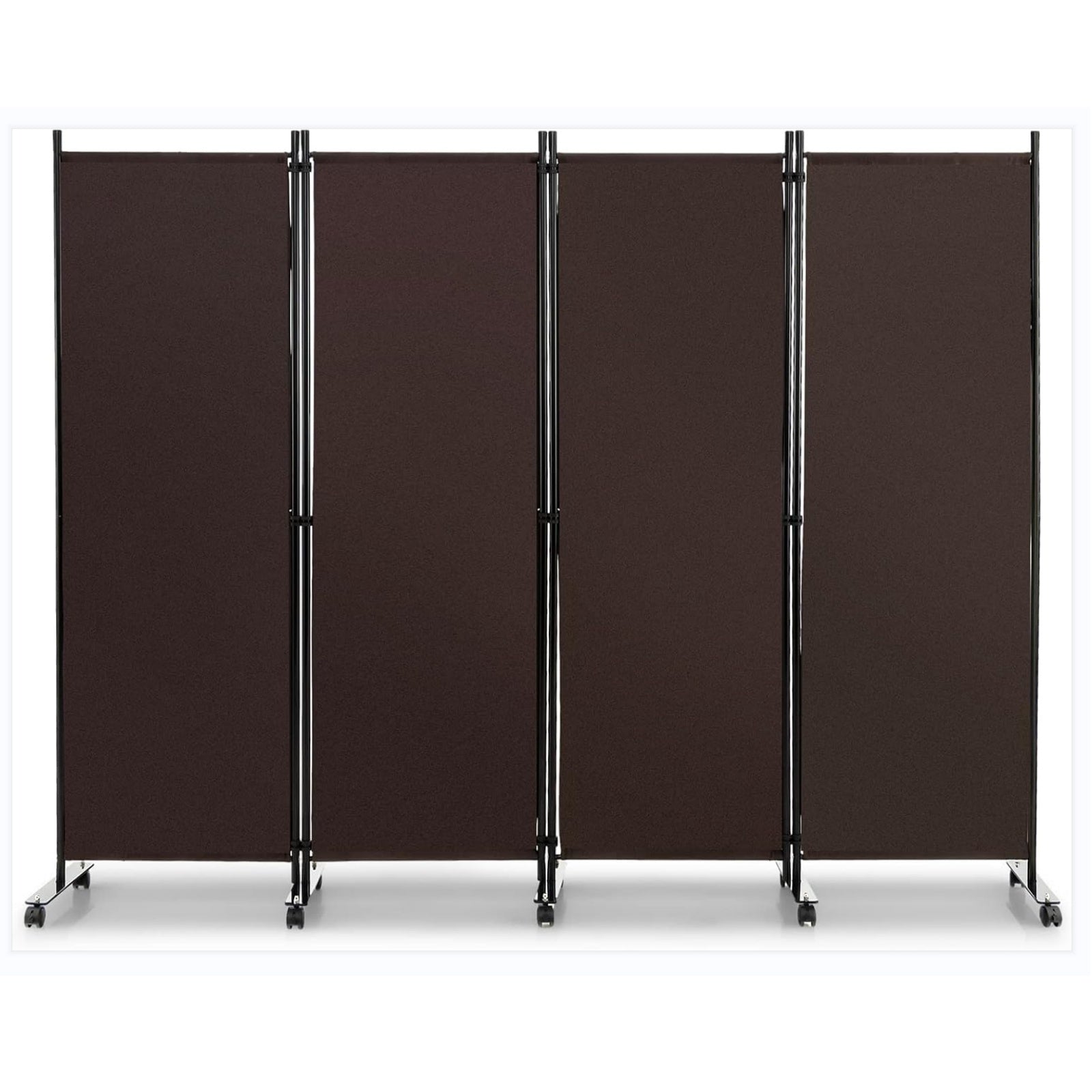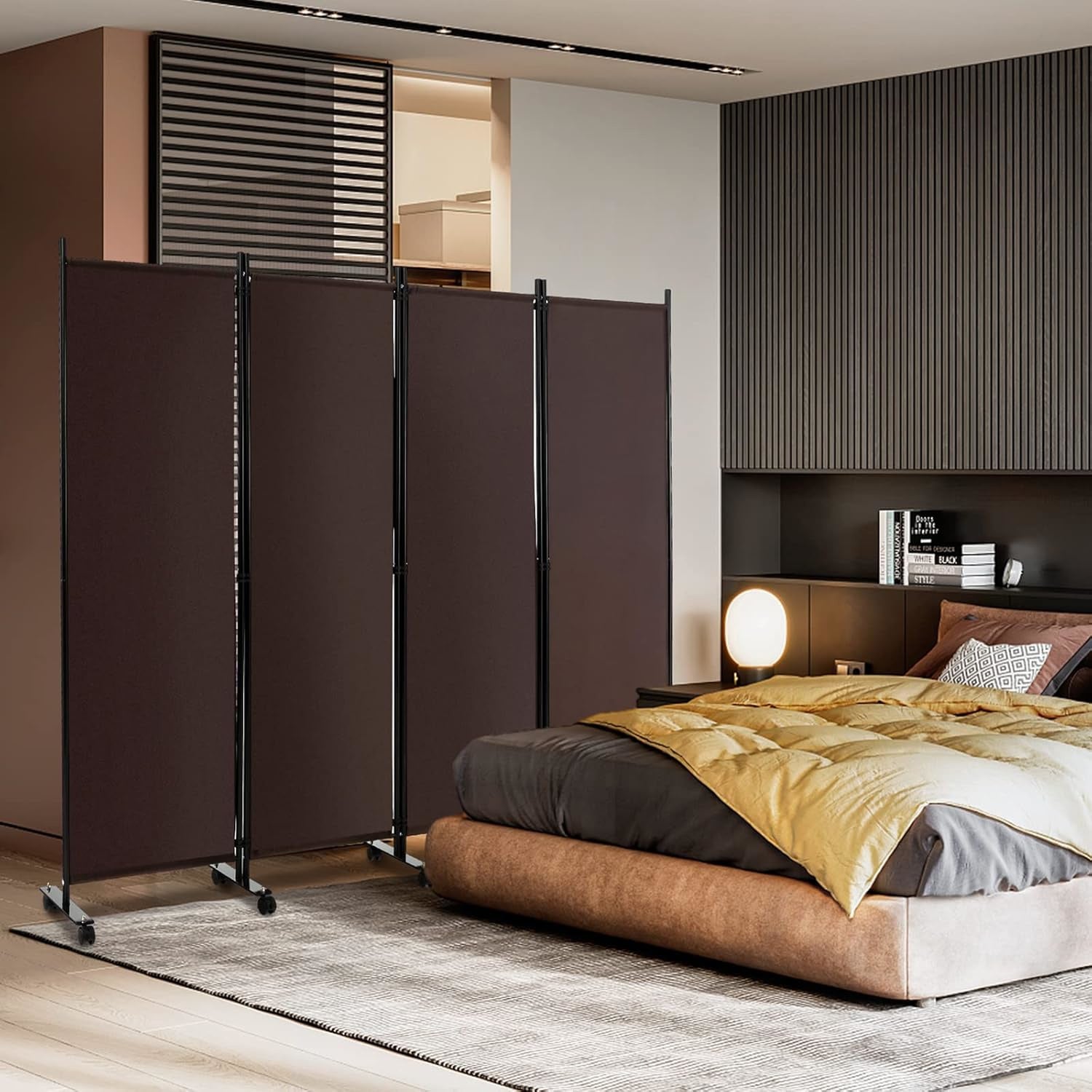 Paravent à 4 Panneaux Marron Foncé à Roulettes
