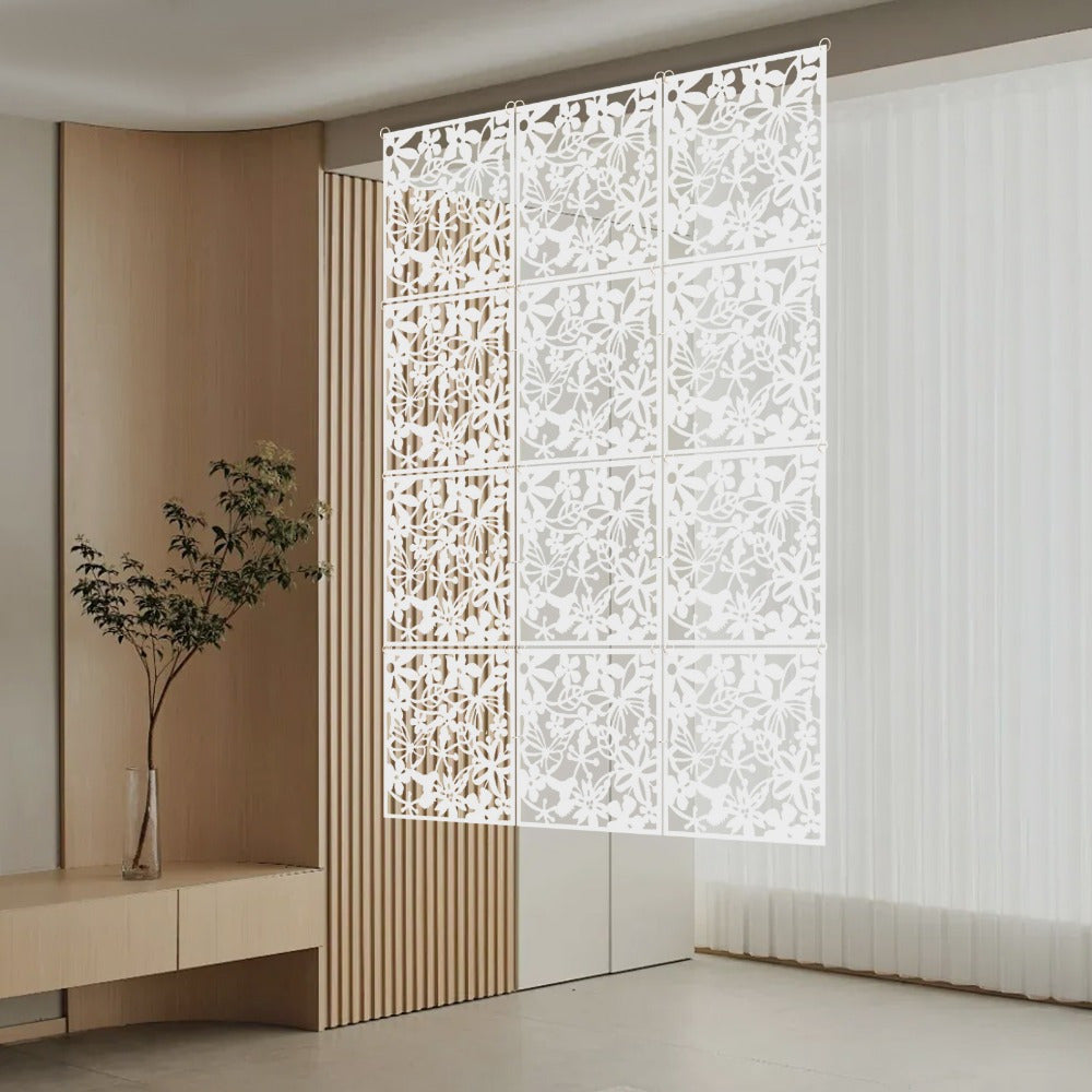 Créez une ambiance légère et aérée dans votre intérieur avec ce paravent décoratif. Son design ajouré présente un délicat motif de fleurs et de papillons. Facile à installer, il divise subtilement l'espace ou embellit un mur, apportant une touche de modernité.