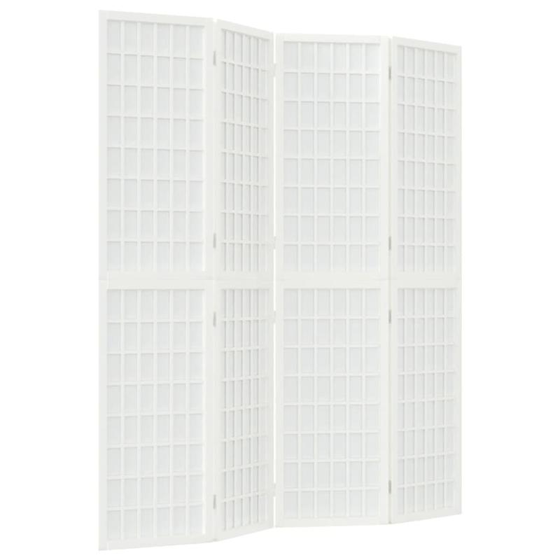 Paravent Blanc Cassé à 4 Panneaux Quadrillés