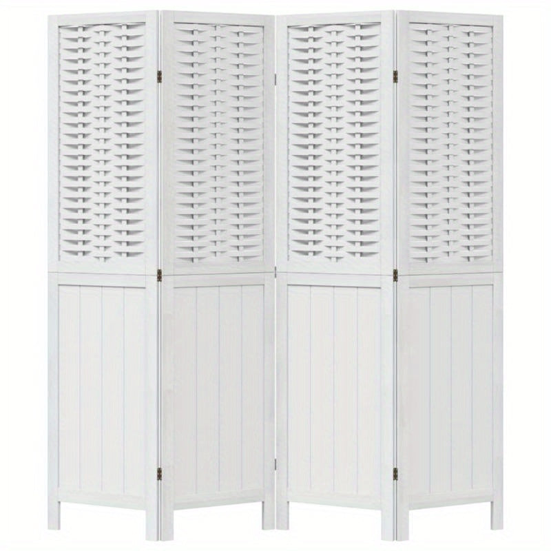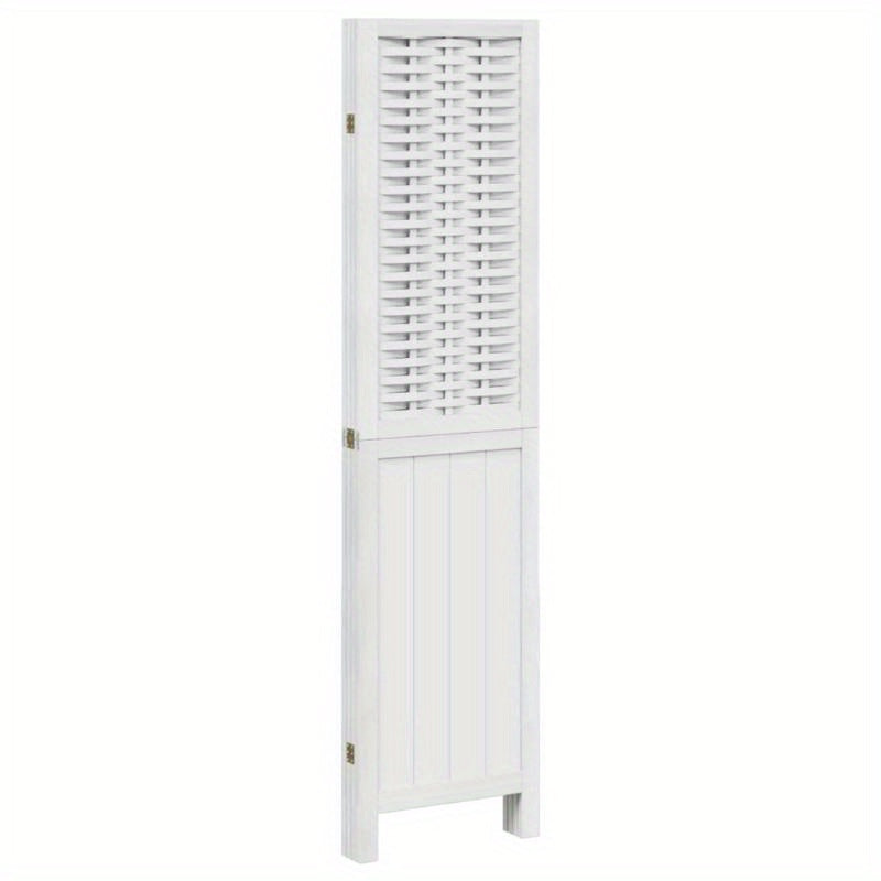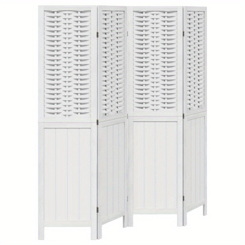 Créez un espace intime et stylé avec ce paravent blanc à 4 panneaux en bois. Chaque panneau présente un haut au design tressé et une base en planches verticales. Idéal pour séparer une pièce ou ajouter une touche décorative. Se plie facilement.
