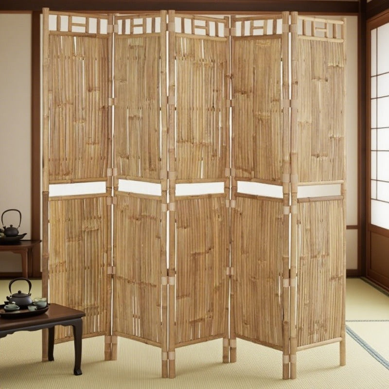 Paravent en Bambou Naturel et Blanc 5 Panneaux