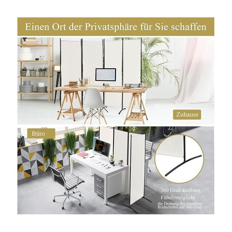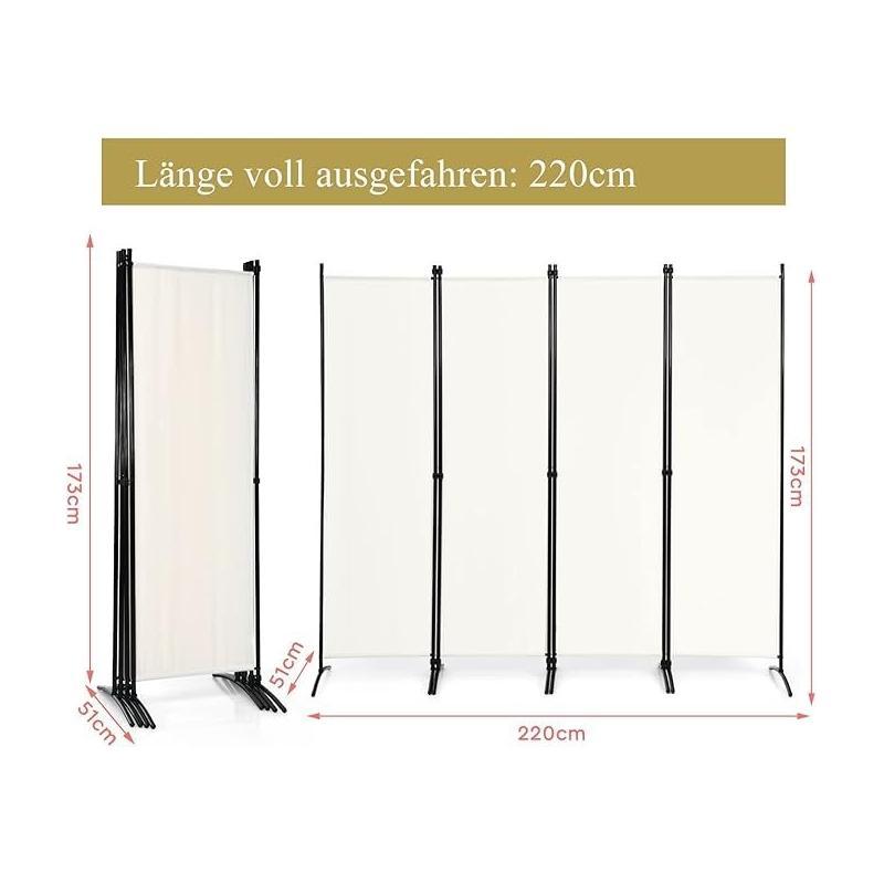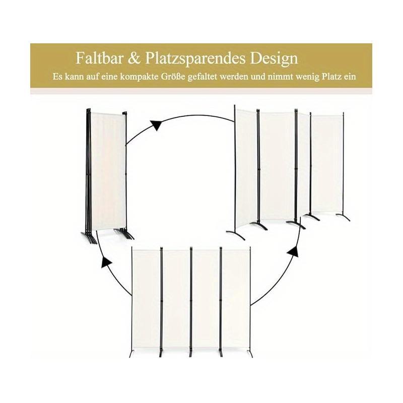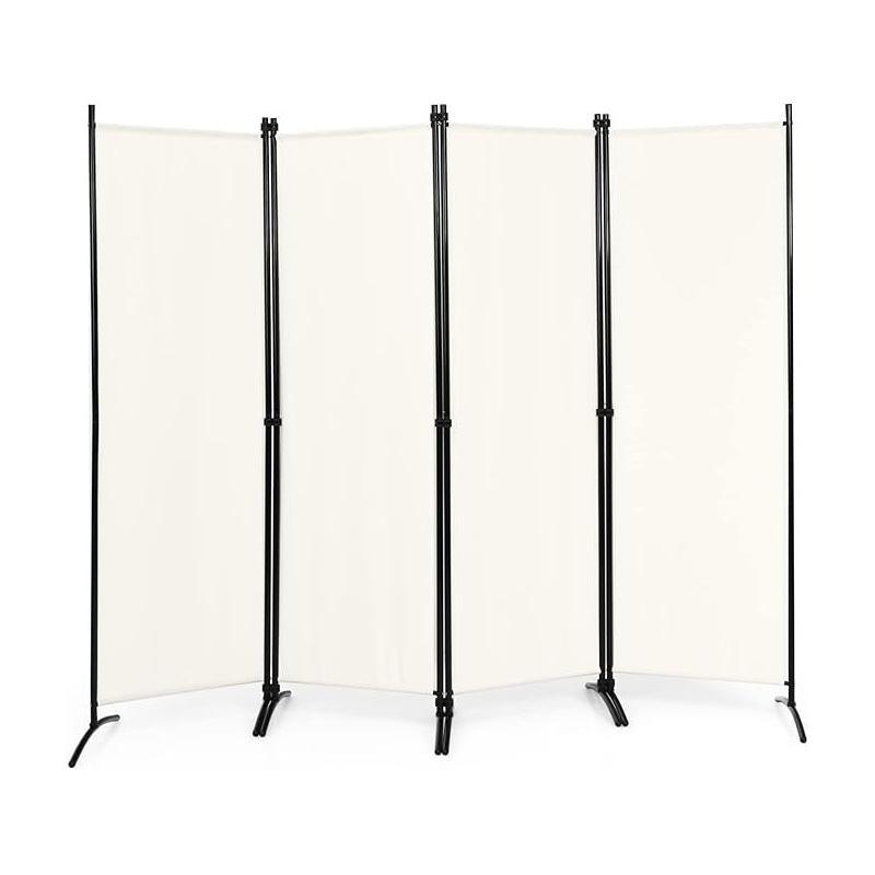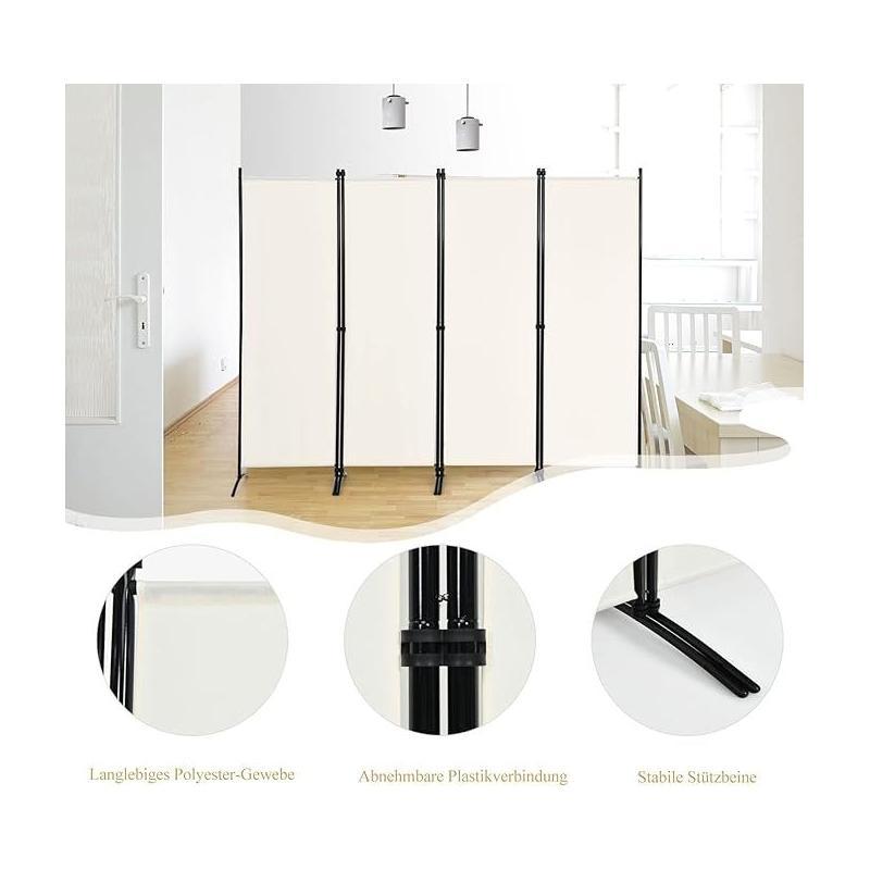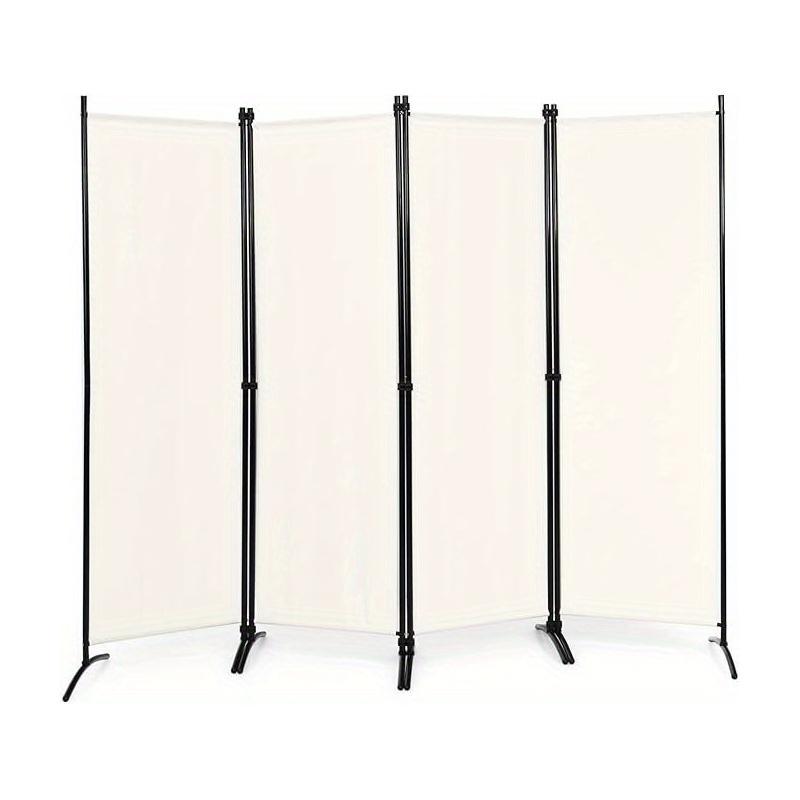 Créez une séparation élégante dans n'importe quelle pièce avec ce paravent moderne. Il dispose de 4 panneaux pliables en tissu de couleur crème, parfaits pour la discrétion. Son cadre fin en métal noir assure stabilité et un style épuré. Idéal pour diviser un espace ou ajouter une touche décorative.