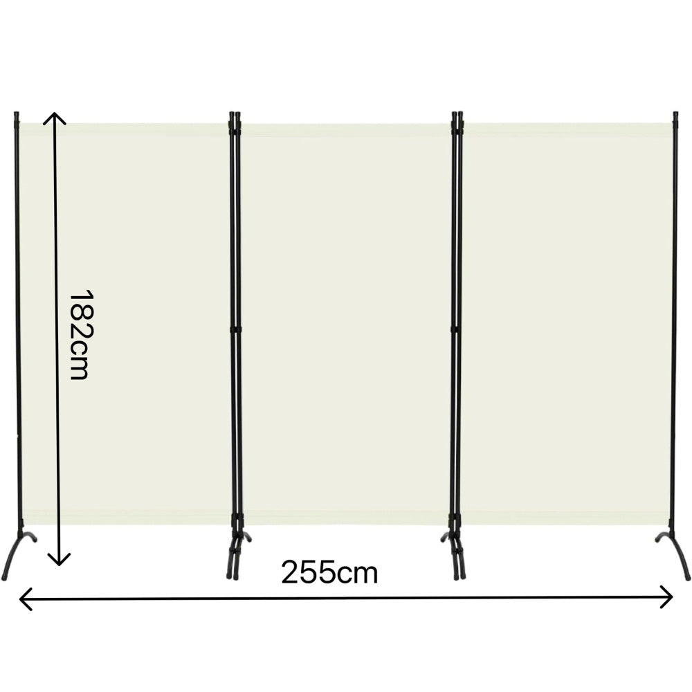 Paravent à Trois Panneaux Crème avec Structure en Métal Noir