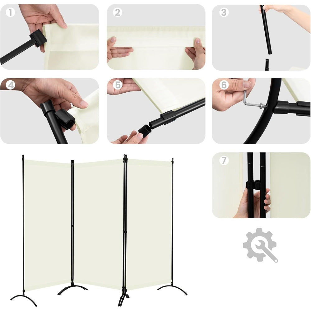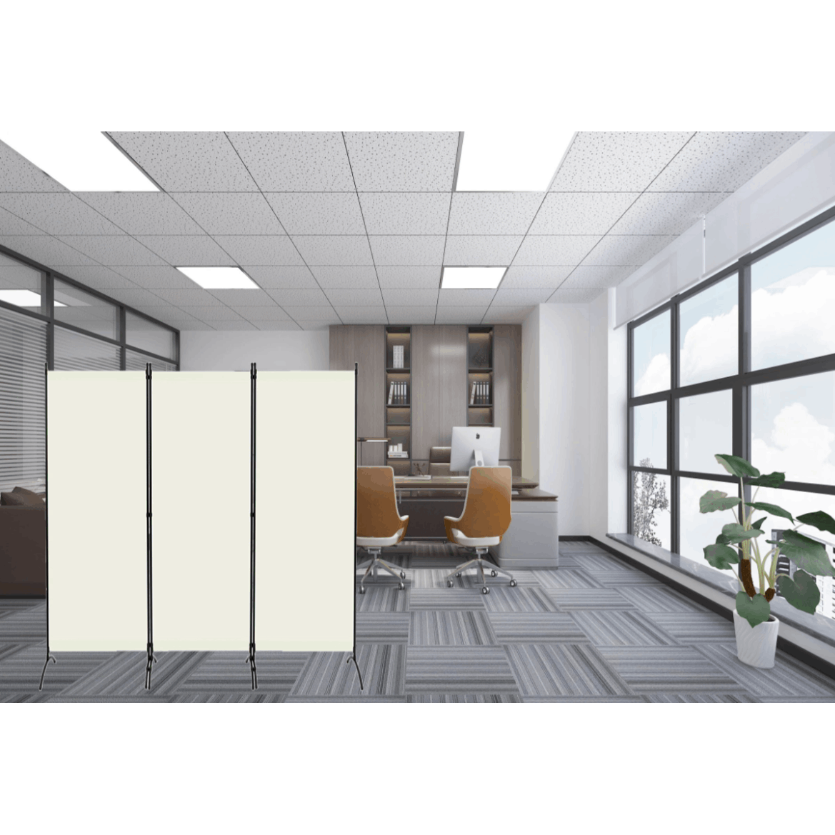 Créez un espace privé ou délimitez une zone avec ce paravent moderne à trois panneaux. Son tissu couleur crème et sa structure en métal noir offrent un design épuré. Idéal pour les bureaux ou les intérieurs contemporains, il apporte une touche discrète et fonctionnelle. Léger et facile à déplacer.