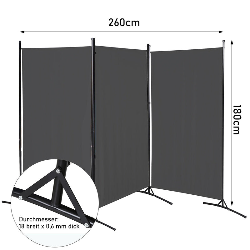Paravent en Tissu Gris Anthracite sur Pieds Métal
