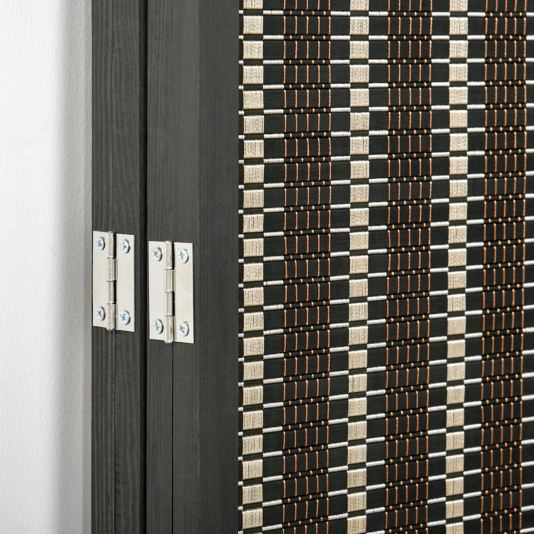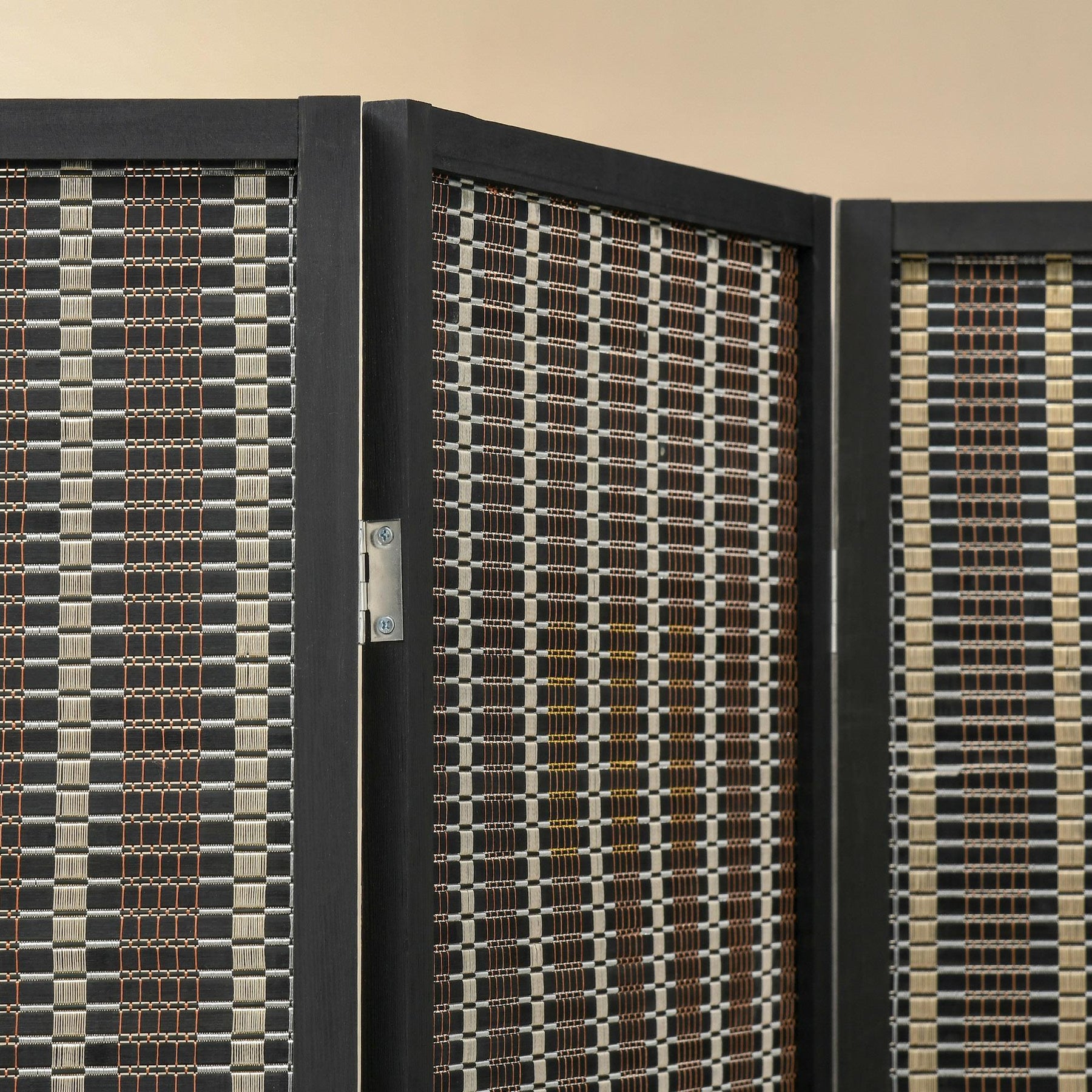Paravent 4 Panneaux en Bois Tissé Noir et Beige