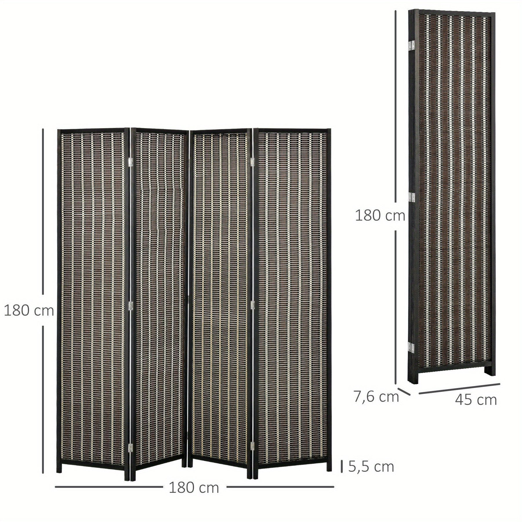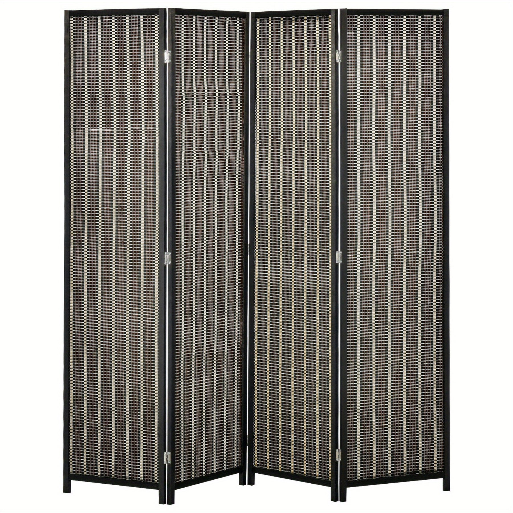 Créez de l'intimité avec ce paravent moderne à 4 panneaux. Sa structure en bois foncé met en valeur les panneaux au motif tissé noir et beige. Une touche d'élégance discrète qui s'intègre facilement à tout intérieur.