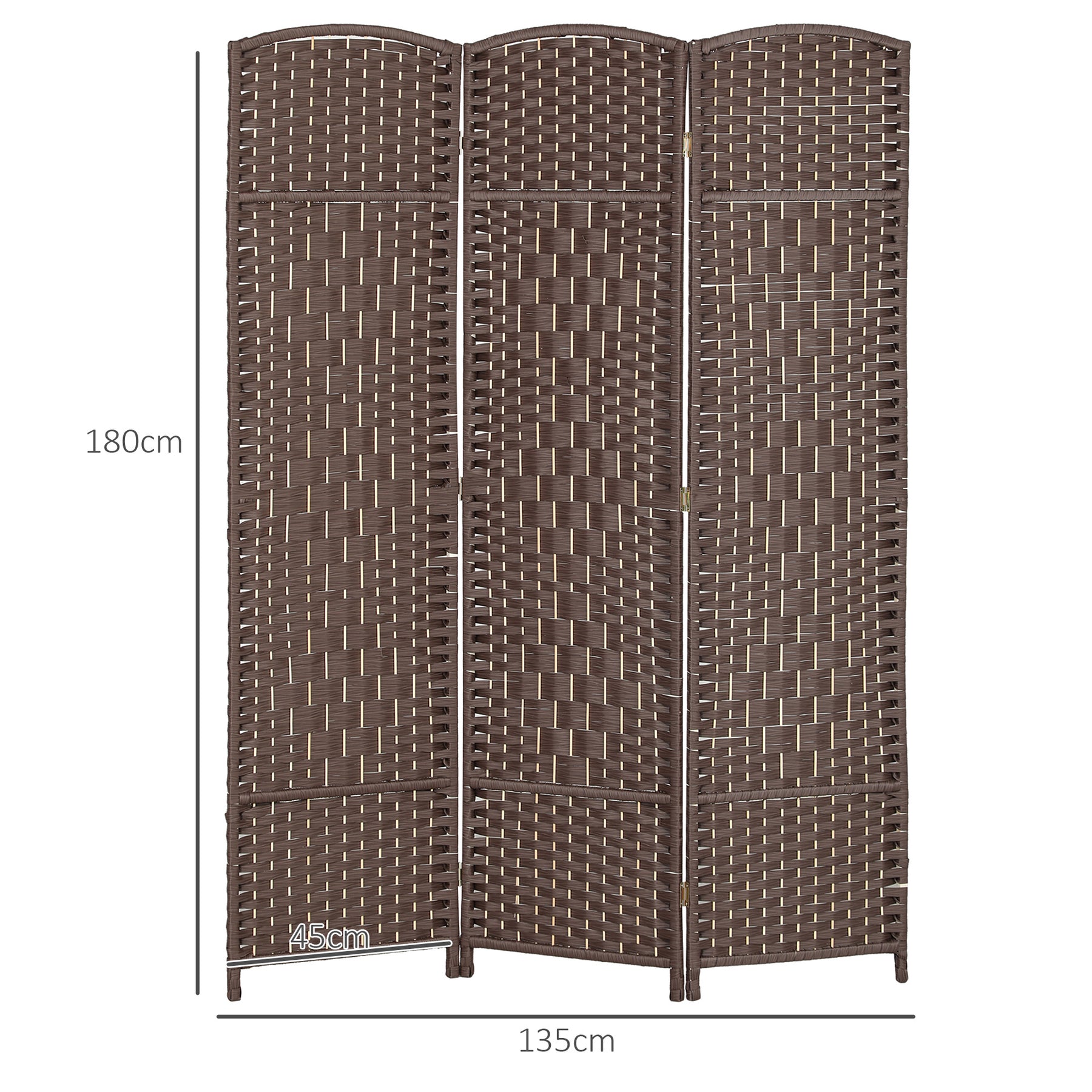 Créez une séparation élégante avec ce paravent marron foncé. Il possède 3 panneaux en résine tressée avec des sommets arrondis. Idéal pour délimiter un espace ou apporter de l'intimité, son design s'intègre facilement.
