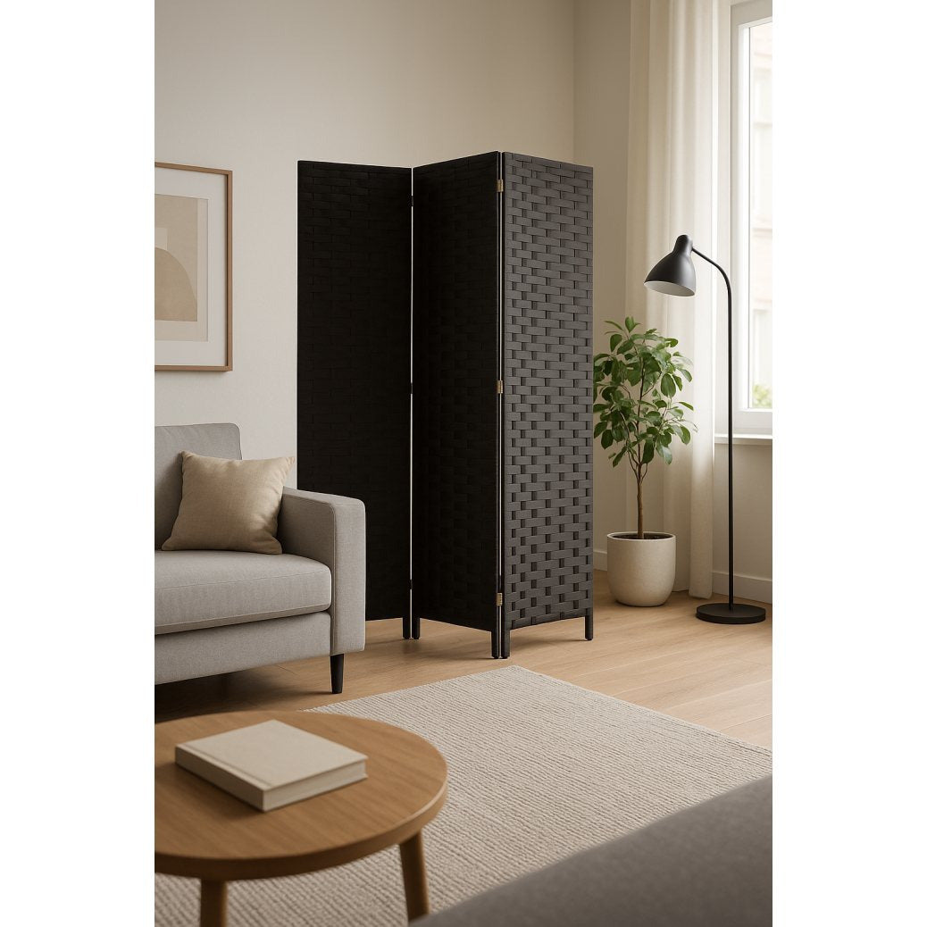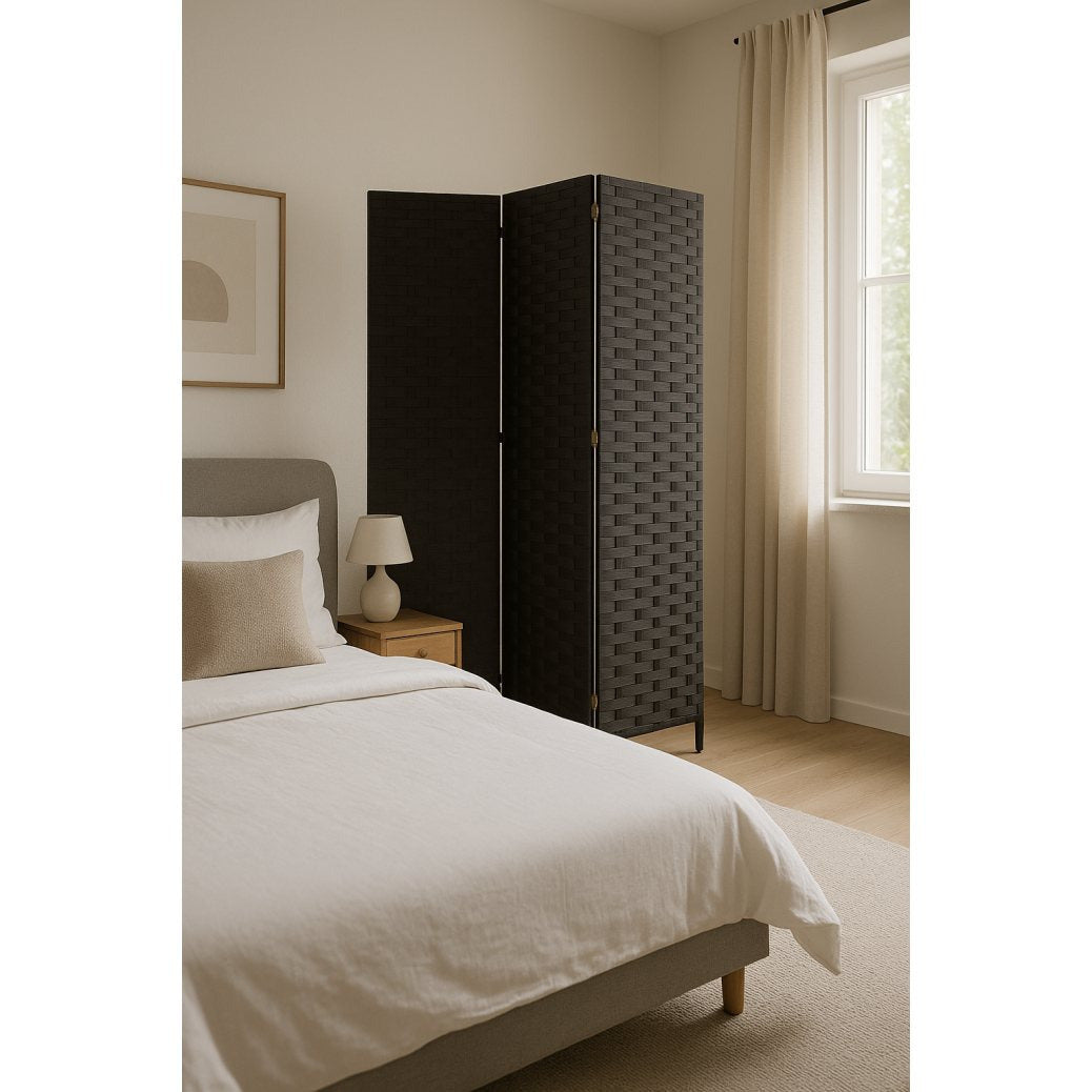 Paravent 3 Panneaux Tressé Gris Anthracite Moderne
