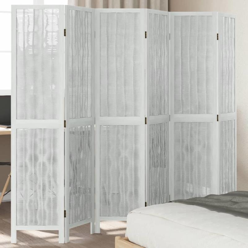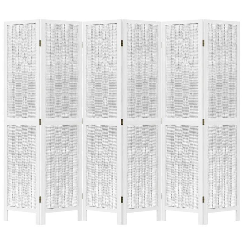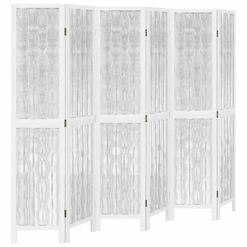 Paravent Blanc en Rotin Tressé à Motif Ondulé