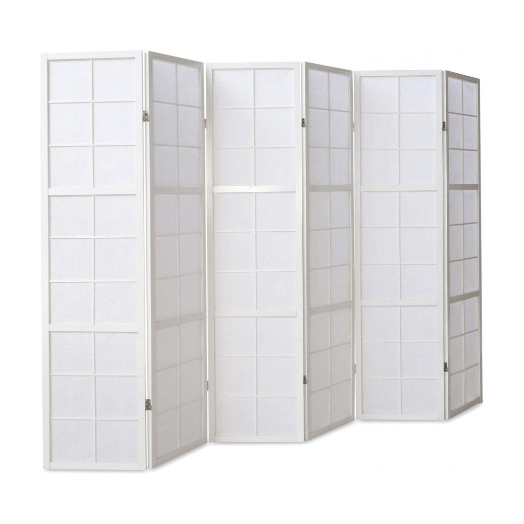 Paravent en Bois Blanc Style Shōji à 6 Panneaux