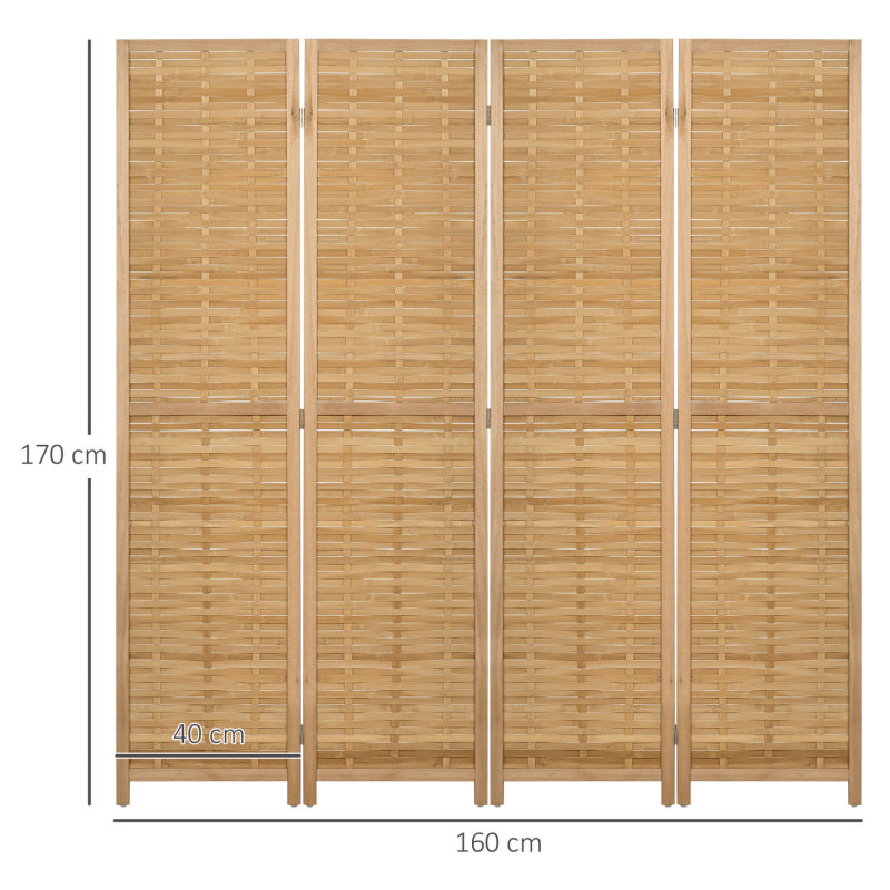 Paravent en Bois Clair Tressé à 4 Panneaux