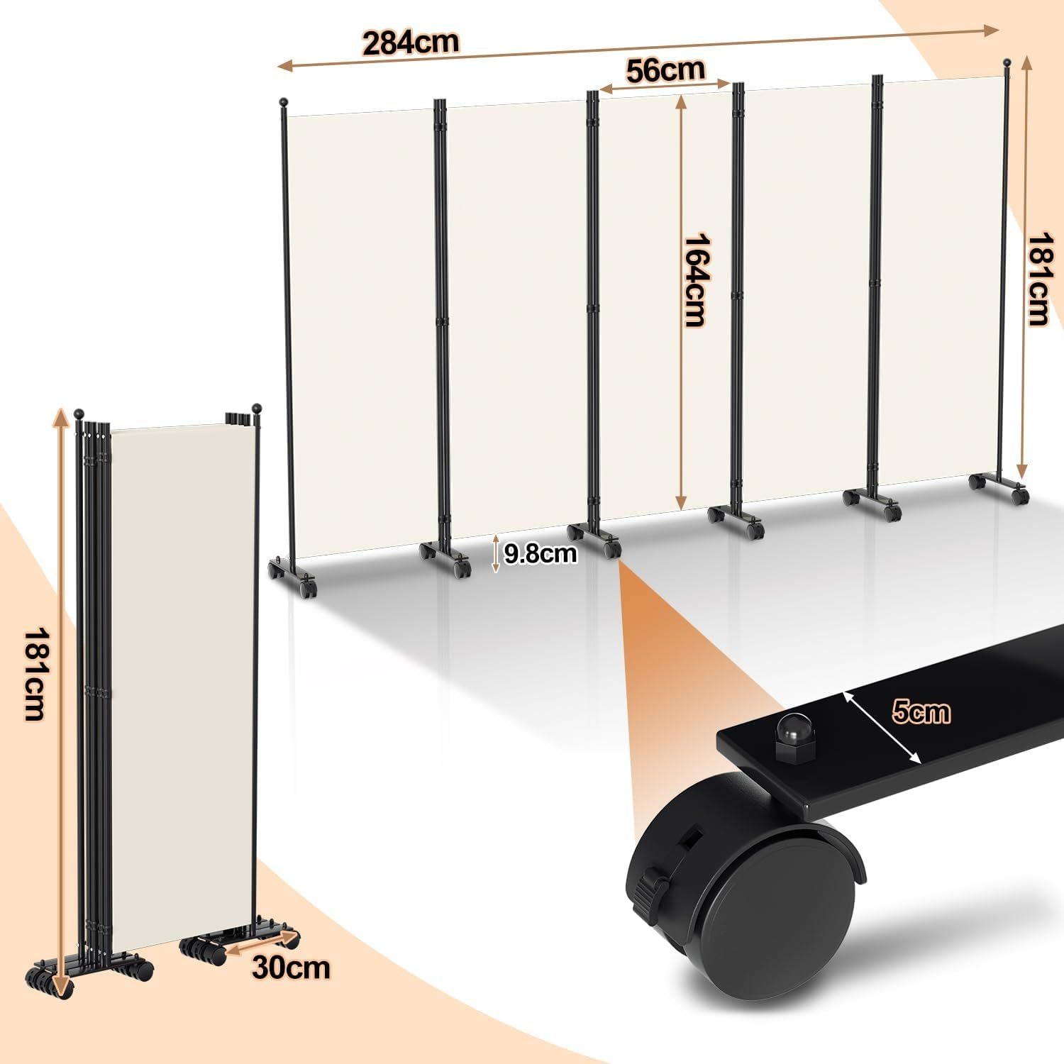 Divisez facilement votre espace avec ce paravent mobile à quatre panneaux. Son design épuré et ses toiles beige clair s'intègrent discrètement. Monté sur roulettes avec un cadre en métal noir, il offre une flexibilité totale pour créer de l'intimité ou organiser votre pièce.