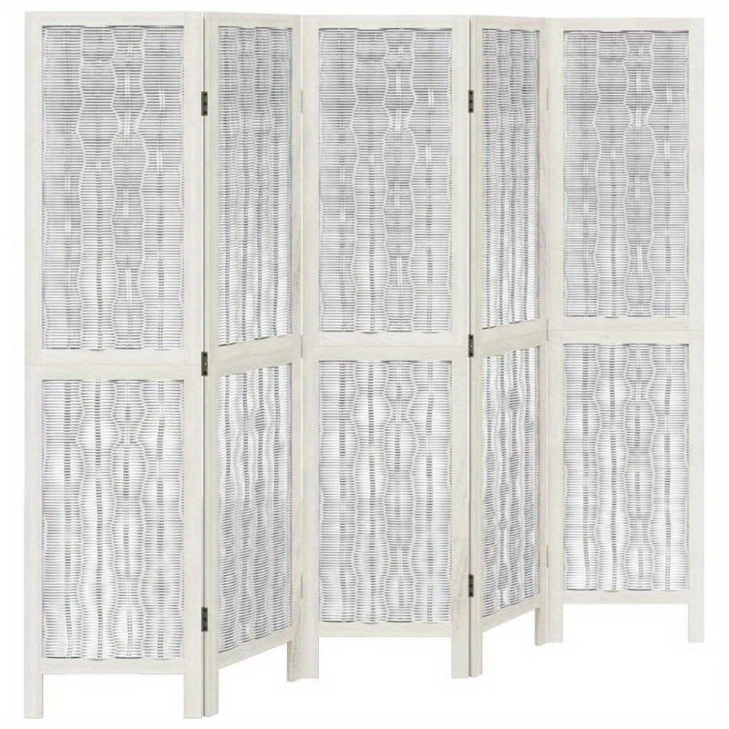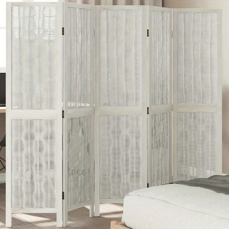 Créez une séparation élégante dans votre intérieur avec ce paravent à 5 panneaux. Son design moderne en rotin tressé blanc offre une touche de légèreté. Le motif ondulé unique ajoute une texture visuelle captivante. Idéal pour délimiter des espaces avec style.