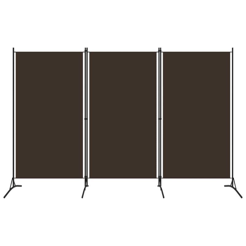 Créez un espace privé ou délimitez une pièce avec ce paravent modulable. Il se compose de trois panneaux en tissu marron foncé, montés sur un cadre robuste en métal noir. Idéal pour le bureau ou la maison, son design minimaliste s'intègre facilement à votre décor.