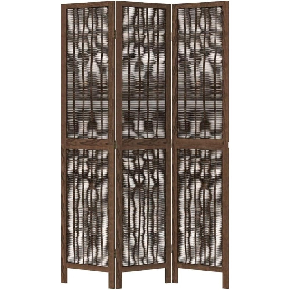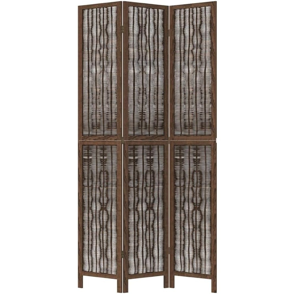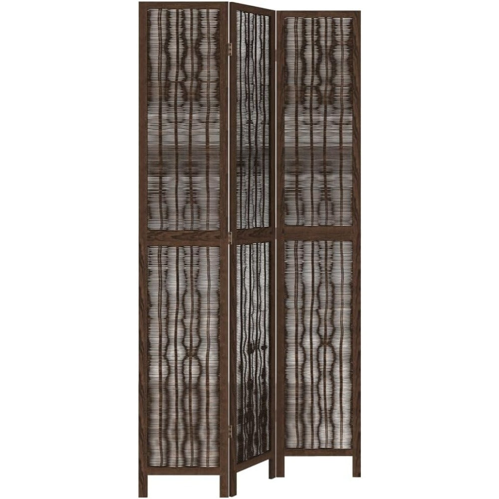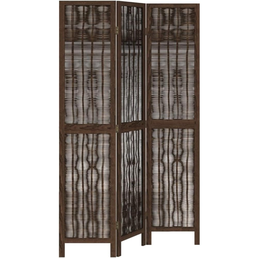 Créez une séparation élégante dans votre intérieur avec ce paravent pliant. Ses 3 panneaux en bois foncé arborent un motif ondulé unique qui laisse passer la lumière. Idéal pour délimiter un espace ou apporter une touche naturelle et décorative à votre pièce.