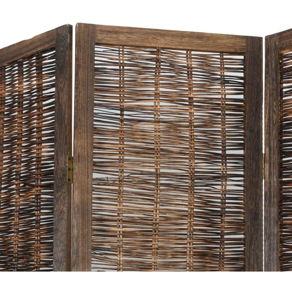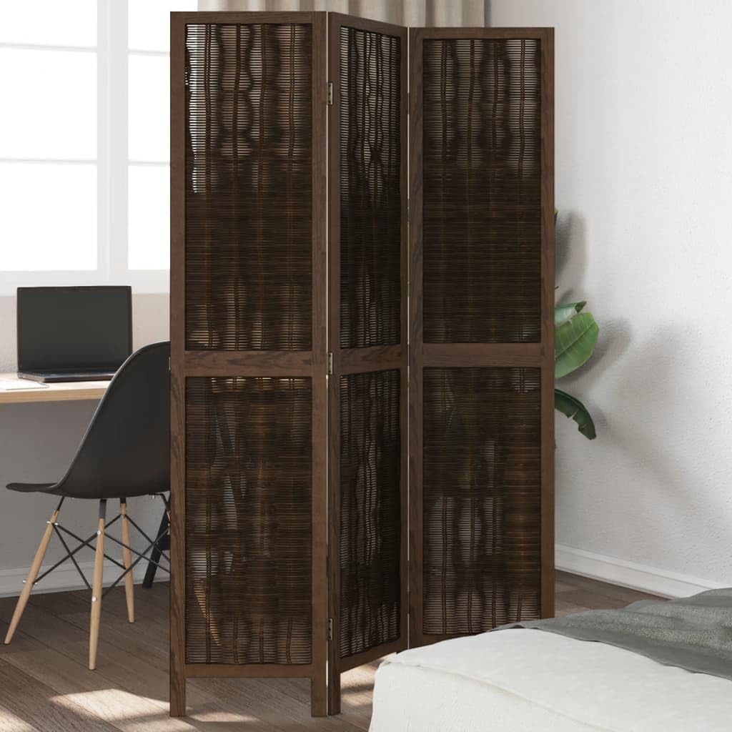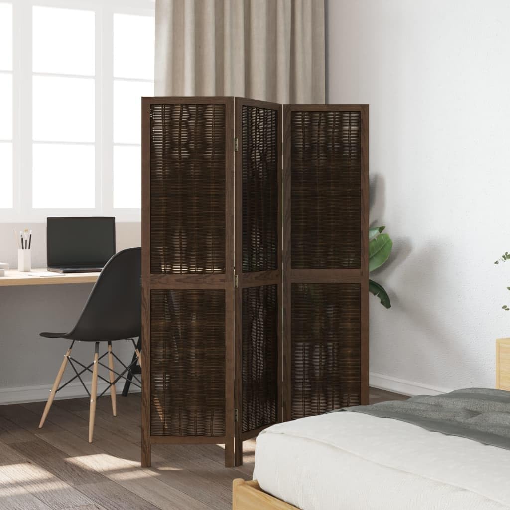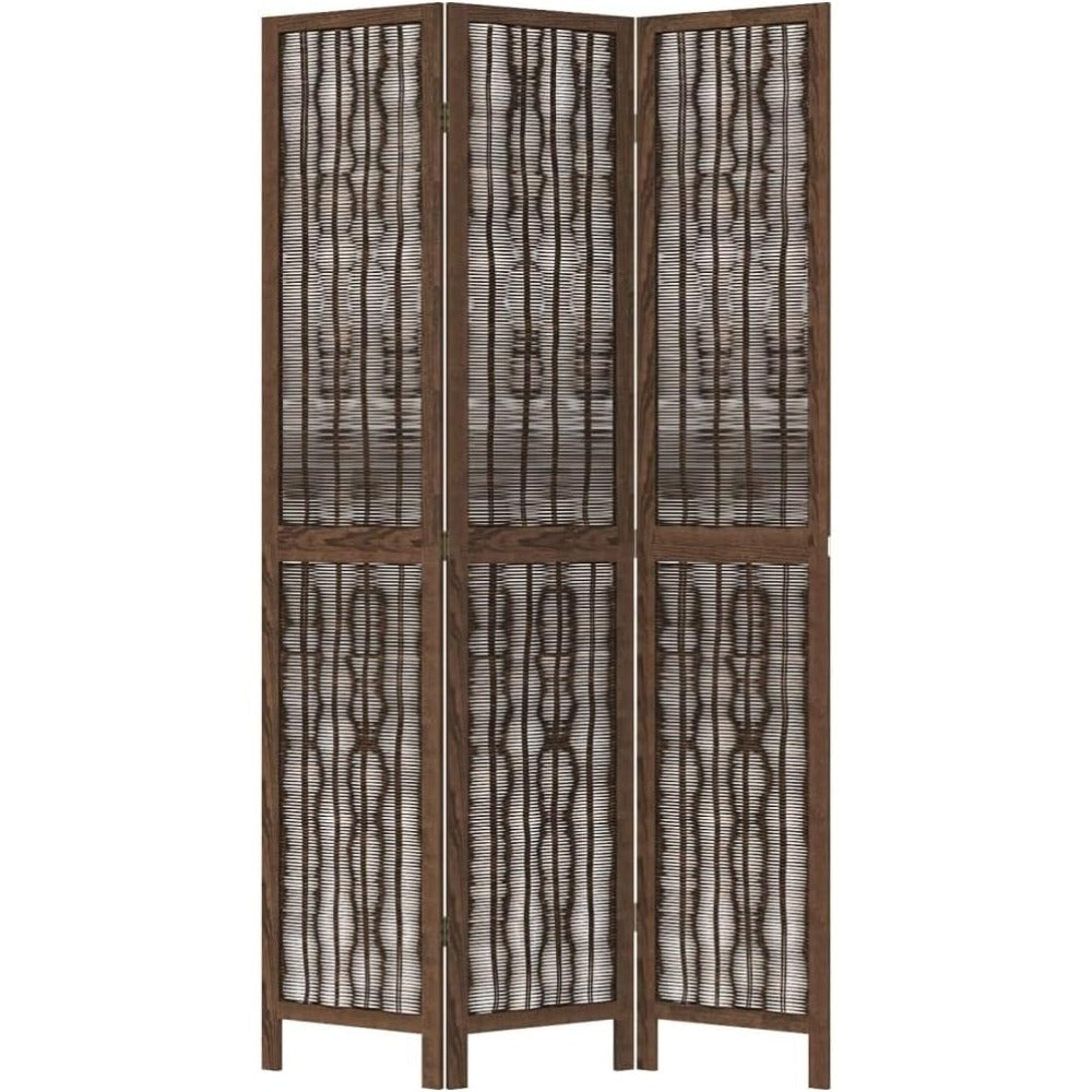 Créez une séparation élégante dans votre intérieur avec ce paravent pliant. Ses 3 panneaux en bois foncé arborent un motif ondulé unique qui laisse passer la lumière. Idéal pour délimiter un espace ou apporter une touche naturelle et décorative à votre pièce.