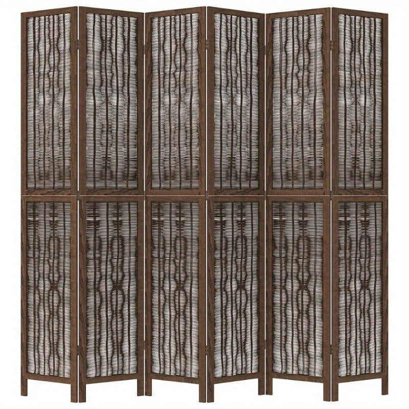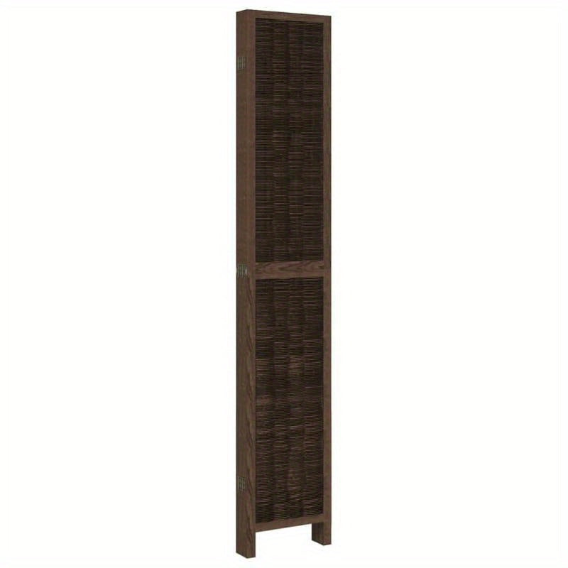 Créez un espace intime et stylé avec ce paravent pliant. Ses cinq panneaux en bois marron foncé sont ornés de lamelles tressées pour une touche naturelle. Idéal pour séparer des zones ou ajouter une note décorative moderne. Laisse passer la lumière délicatement.