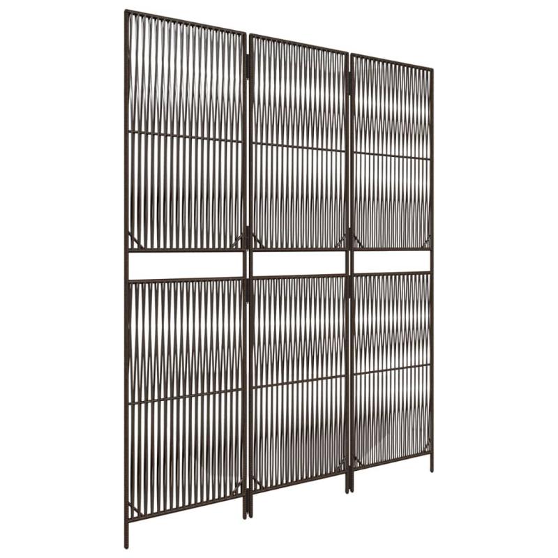 Paravent Pliant en Métal Marron Foncé à Lattes Verticales