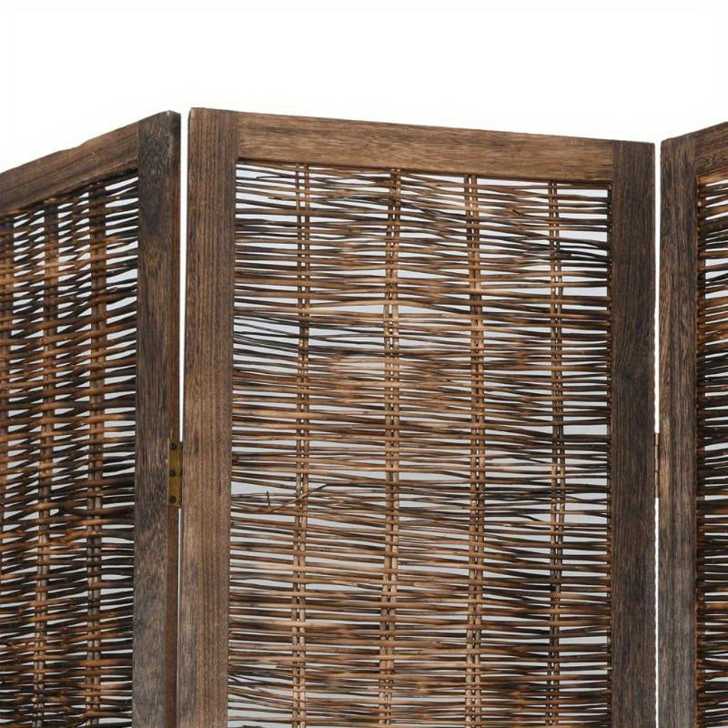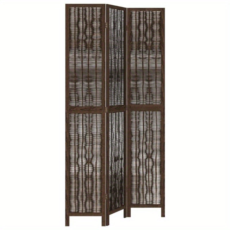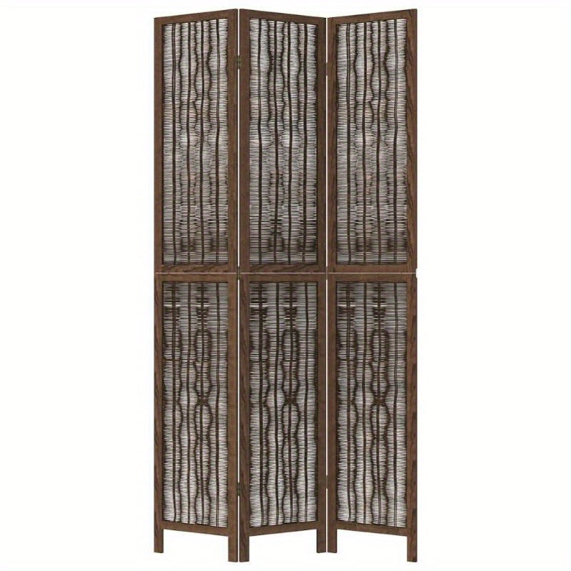 Ajoutez une touche naturelle et une intimité discrète à votre intérieur avec ce paravent. Ses trois panneaux en bois marron et bambou tressé offrent un design élégant et fonctionnel. Idéal pour diviser un espace ou comme élément décoratif.