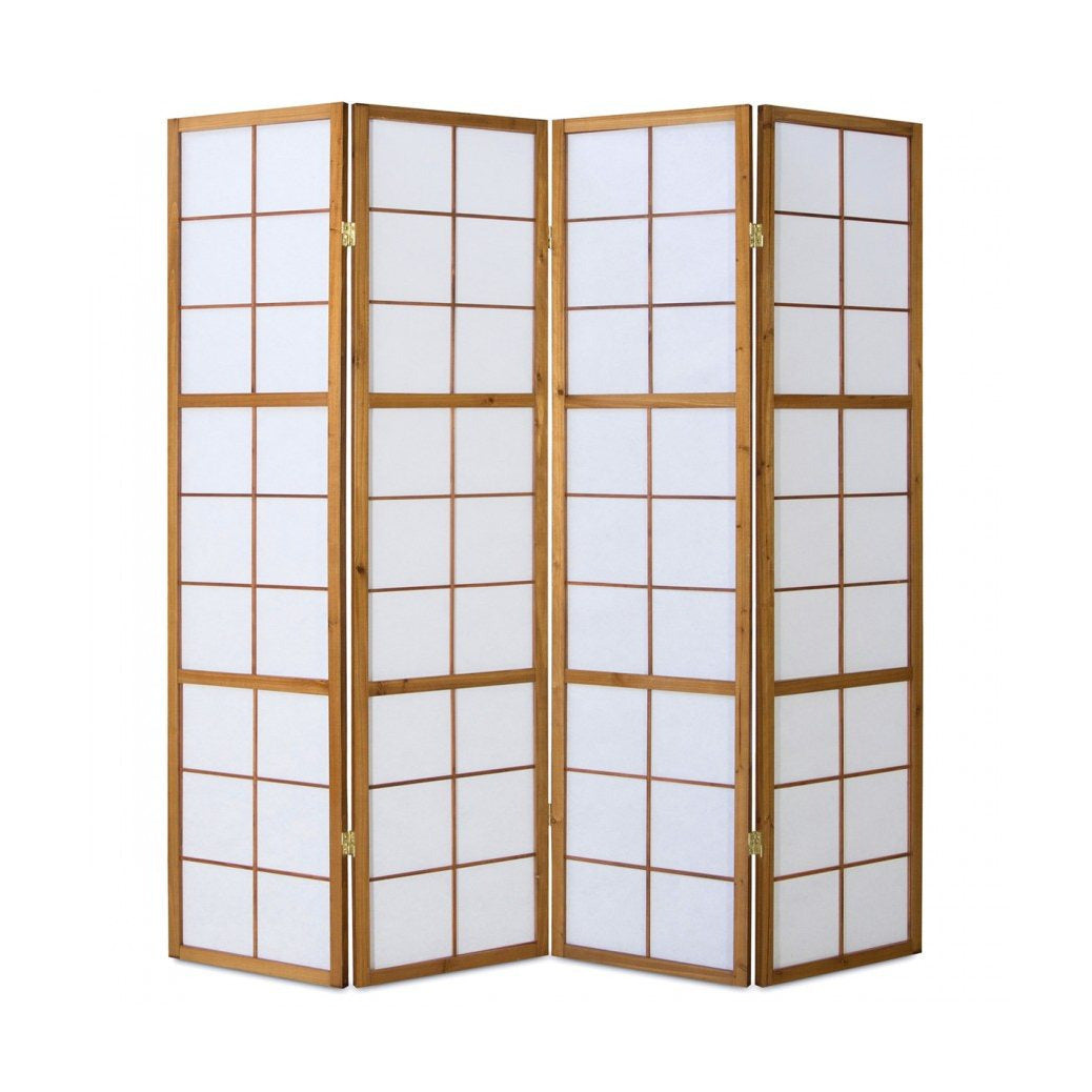 Paravent Shoji en Bois Clair à 4 Panneaux Blancs